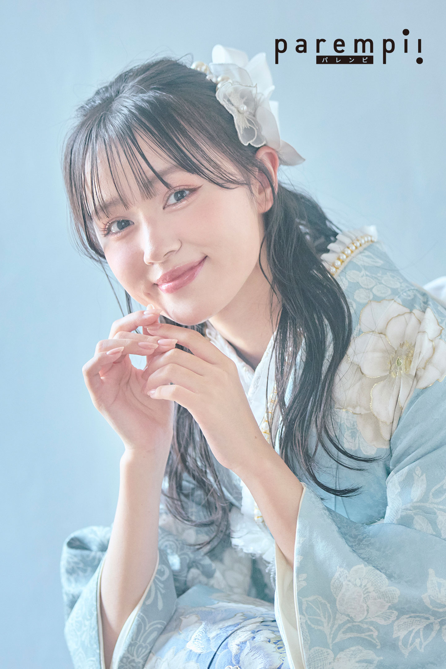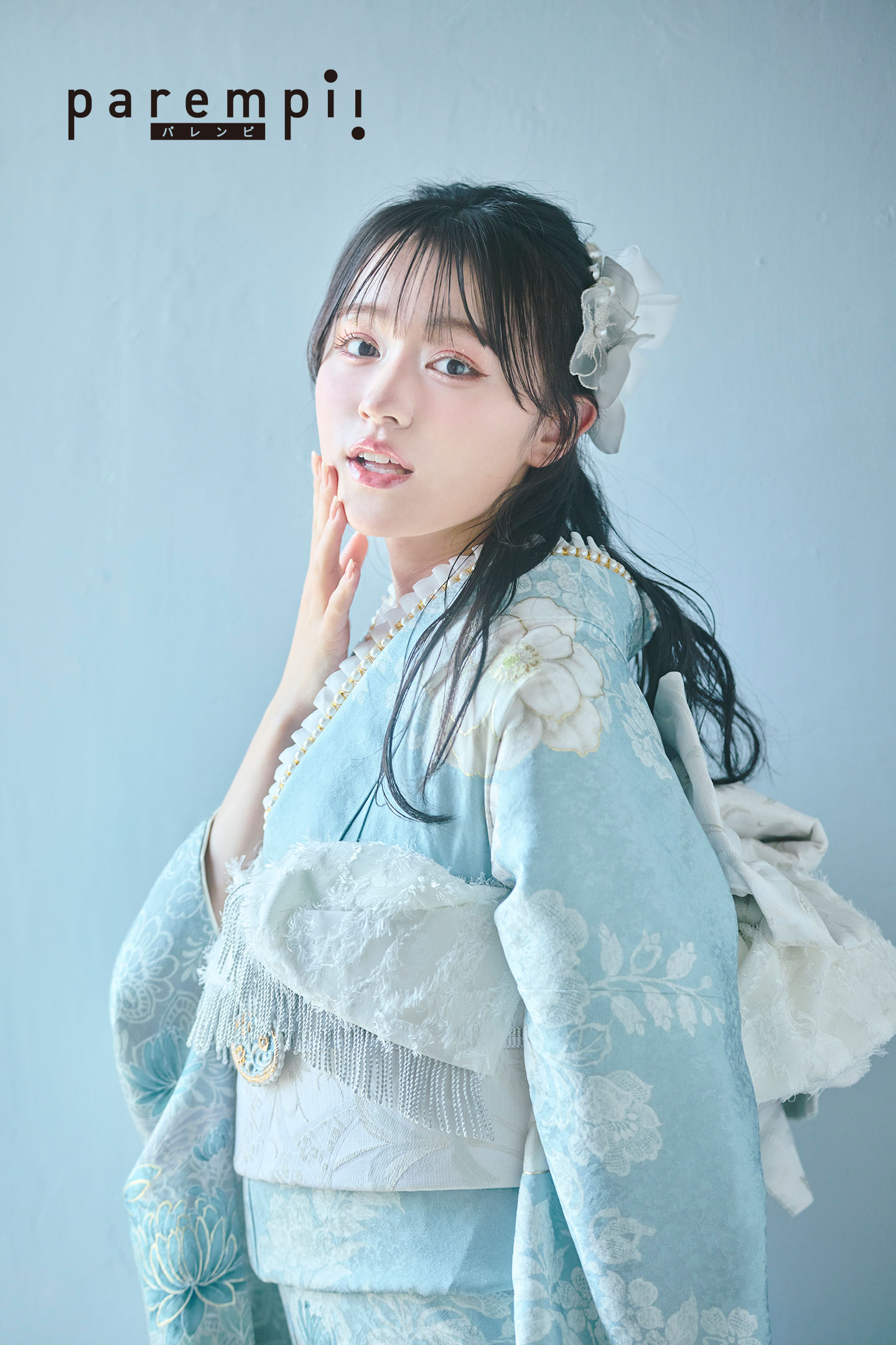 更紗文様とシルエットで表現された花々が描かれたスカイブルーとライトグレーに染め分けた地色が特徴です。洋牡丹・ダリア菊・アネモネなどの花々をポイントにあしらい優雅なデザインに仕上げています。