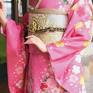 大好きなピンクに囲まれて、夢のような世界を。めいっぱいのピンクの中に牡丹や桜がまるで浮かび上がっているようなぼかしのデザインで、スイート感満載に仕上げた振袖です。