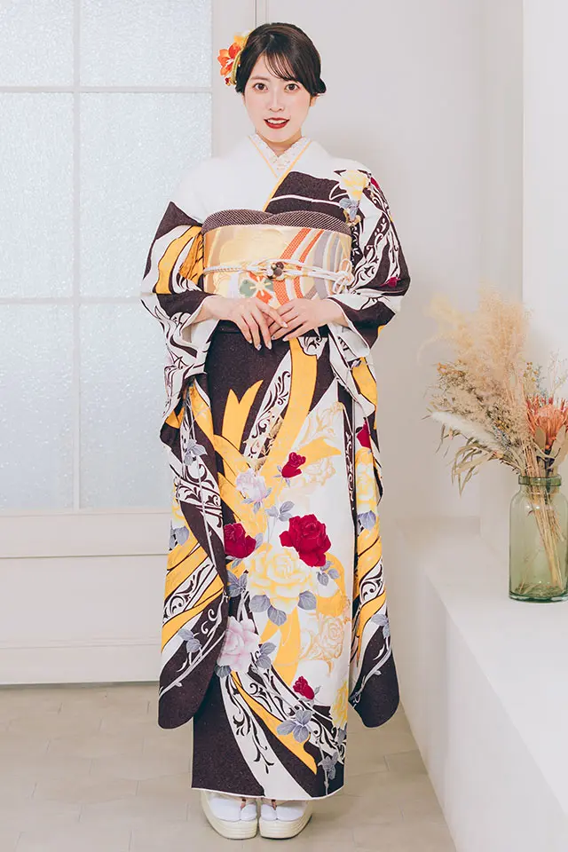 金駒刺繍や金箔など古典の美しさを纏える大人な雰囲気の振袖