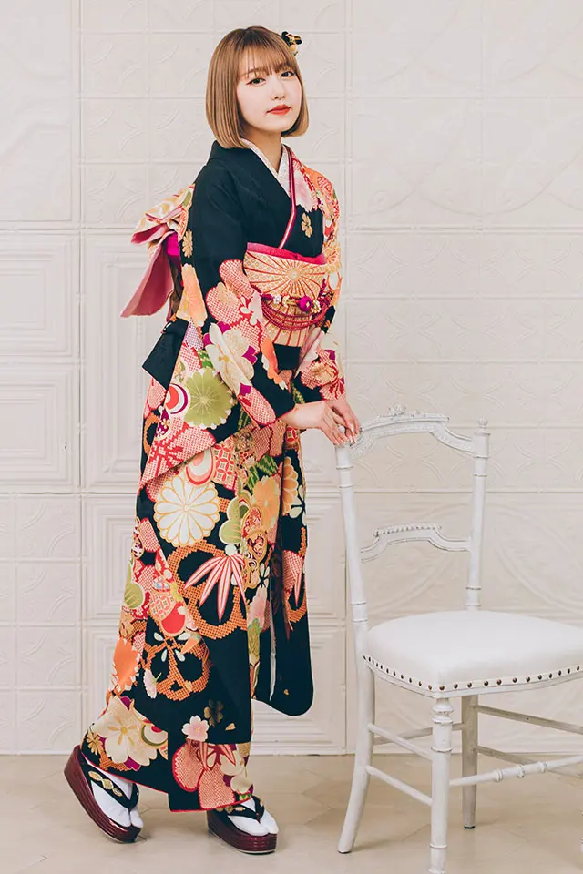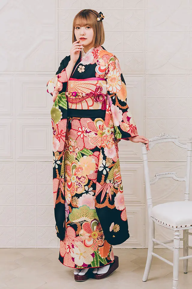 クラシカルなカラーに絞りを配した大胆な和花が目を引く古典振袖。日本伝統の色やモチーフが鮮やかでありながら落ち着いた大人の女性を演出してくれます。※こちらの商品はお取り寄せとなります。詳しくは店舗へお問い合わせください。