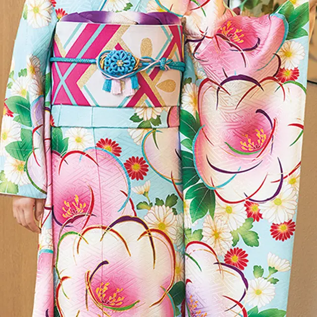 透明感いっぱいのブルーに優雅な古典文様でオシャレ上級者振袖になります。どの角度から見ても可愛いフォトジェニックな振袖です。