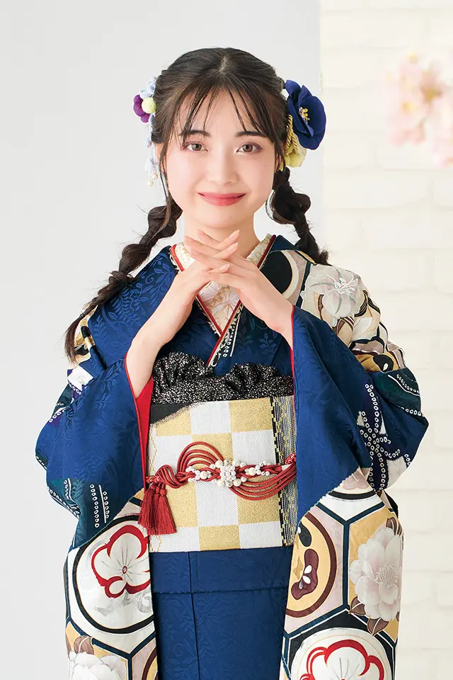 深味があるネイビーの地色とダスティーにおさえた柄色とがうまくマッチした仕上がりになっています。