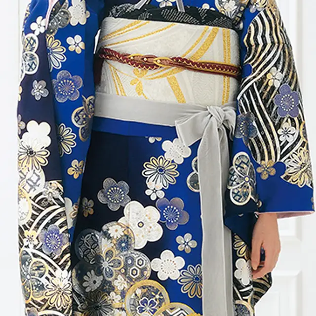 格調高い古典文様を金彩で仕上げた新感覚の古典振袖。地色は二度染めの技法を用いて深みのある紺地に染め上げました。伝統の技術で仕上げた豪華で華やかな振袖です。