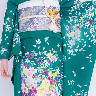桜の花が散りばめられたシンプルでキュートな振袖
