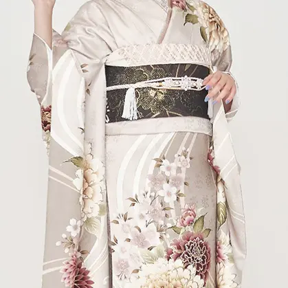 熨斗柄や扇面など正統派の古典柄振袖から、同系色で全体をまとめたトレンド振袖まで幅広く揃えました。どのような小物とも相性が良く着こなしやすさがあり、サイズにお悩みのお嬢様にも様々な着姿を楽しんでいただける正絹振袖です。SIZE:身長185cmまで、ヒップ130cmまで