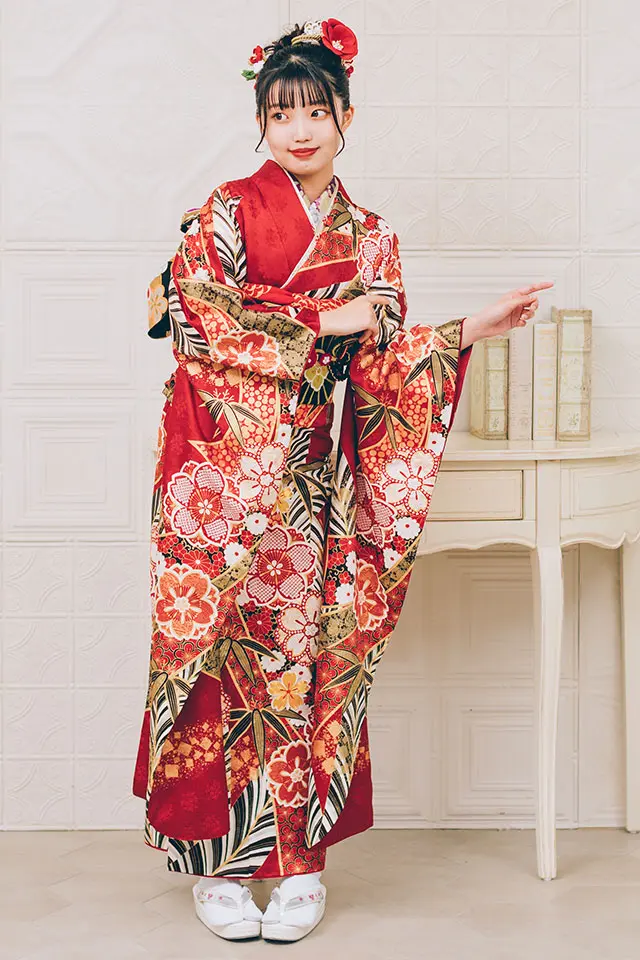 縁起の良い束ね熨斗目柄に大胆な若松柄を合わせた振袖です。鹿の子絞り、金駒刺繍などの技法が随所に施されています。シンプルな配色が格調の高さを目立たせます。※こちらの商品はお取り寄せとなります。詳しくは店舗へお問い合わせください。
