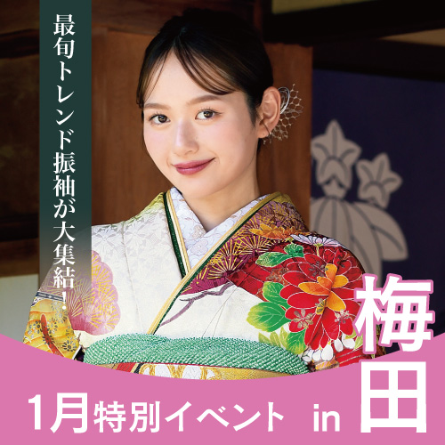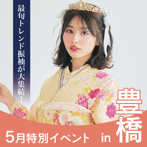 振袖をおトクに見つけたい!そんなあなたのために! 店舗ではあまりお取り扱いのない特別な振袖を試着できる展示会を土日や祝日を中心に開催しています。 また、店舗では毎月お得な商品やプレゼントなど様々なイベントを行っているので要チェック! その他、人気のインフルエンサーなど豪華ゲストをお迎えしたイベントにも注目!公式SNSで告知もあるのでお見逃しなく。